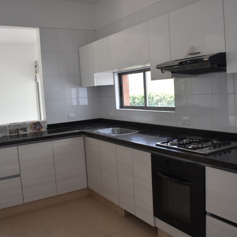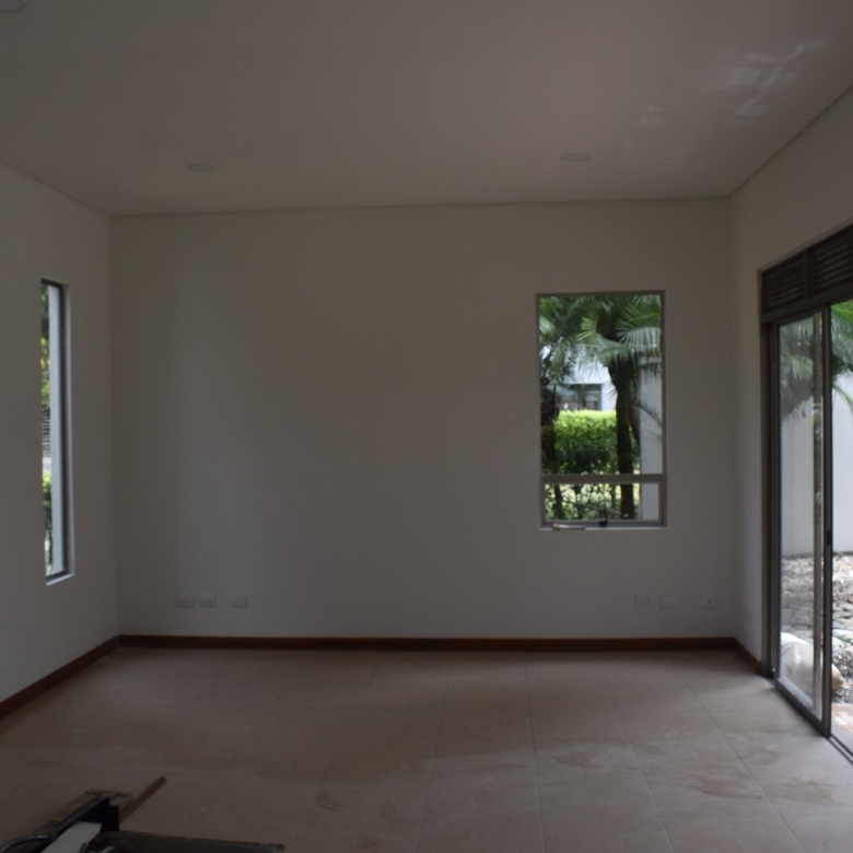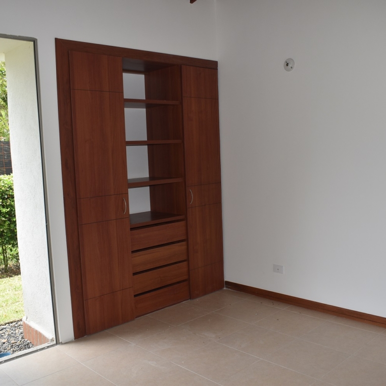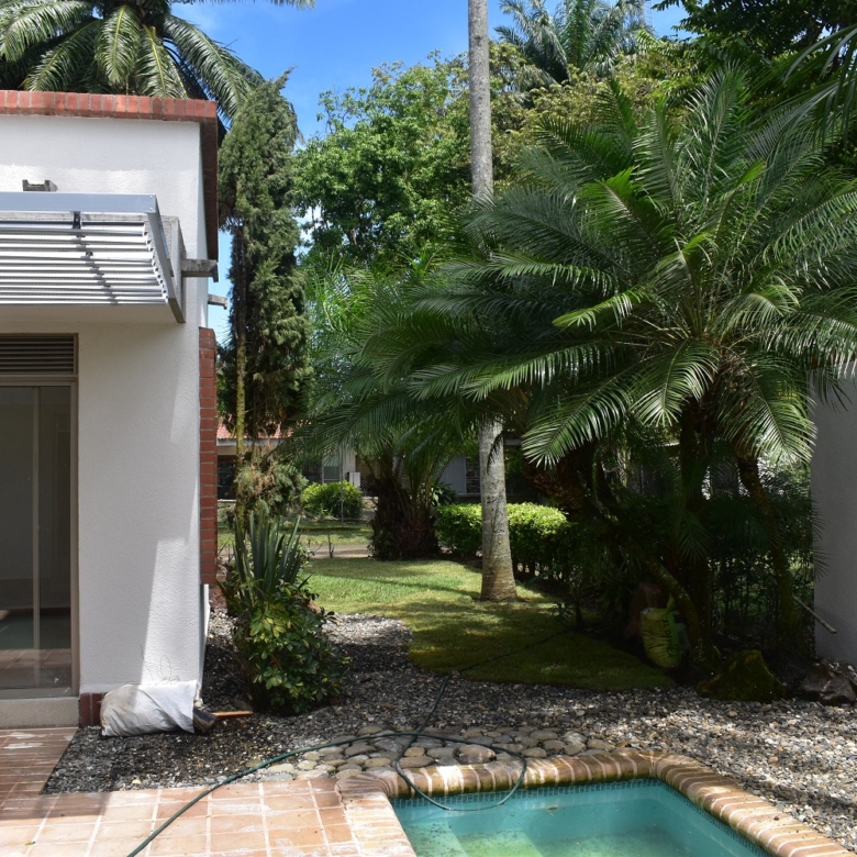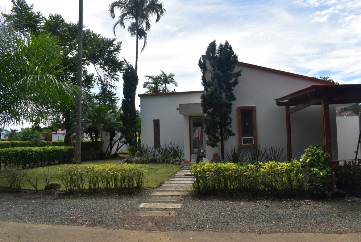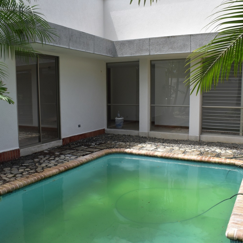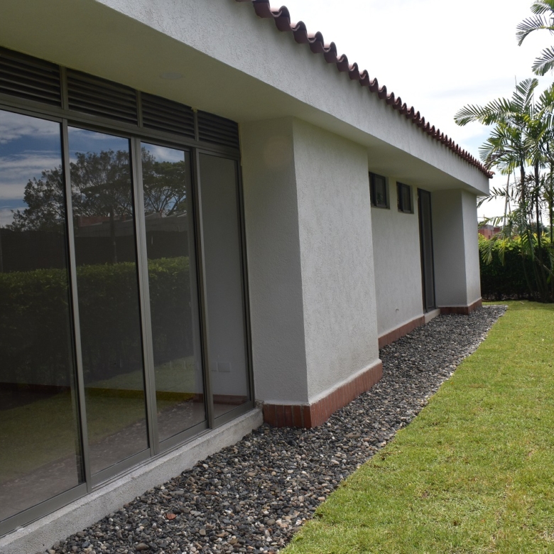 La casa es de un solo nivel ,3 habitaciones cada uno con baño y closet,la principal con vestier,estudio de t,v, start de television,sala comedor,cocina integral,zona de oficios,habitacion de servicio con baño .la casa cuenta con gran zona verde y piscina.