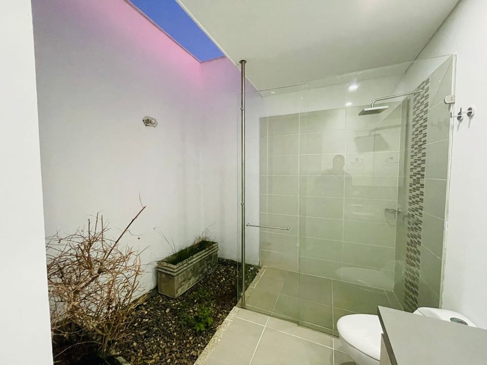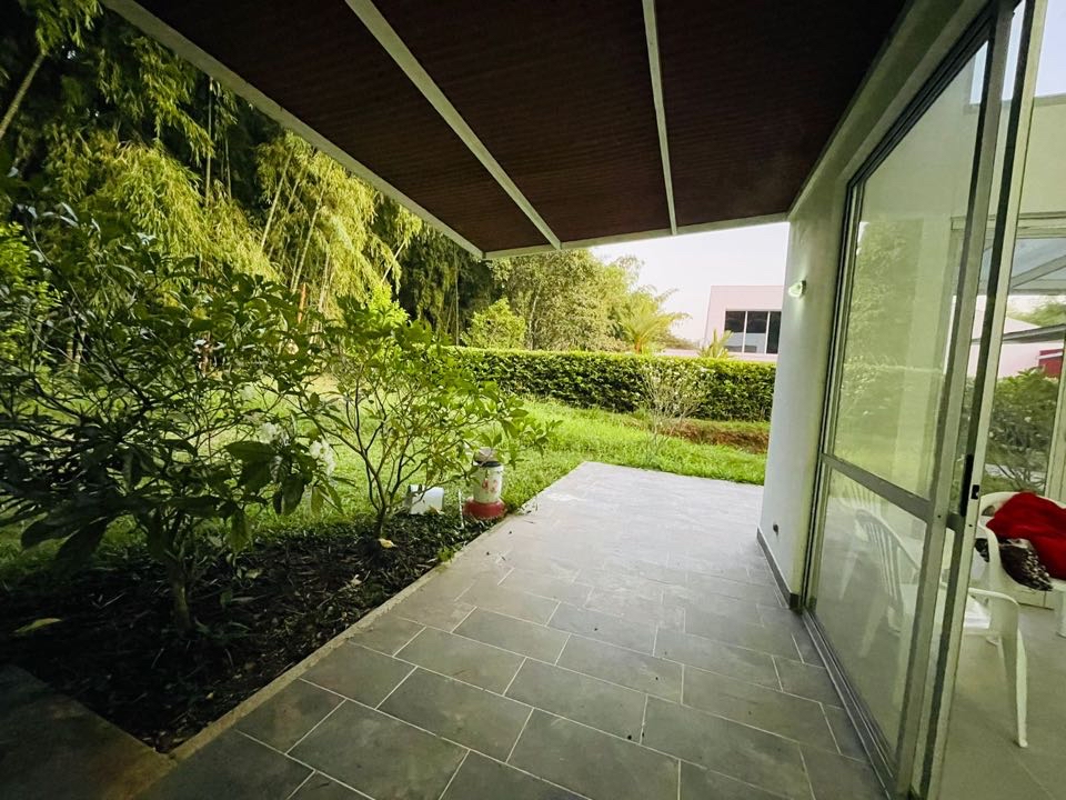 Consta de estudio, sala comedor con terraza, cocina, 3 habitaciones todas con baño principal con vestier y salida al jardin, zona de oficios, cuarto y baño de servicio, zona verde, vista a los Guaduales, parqueadero para 4 carros.