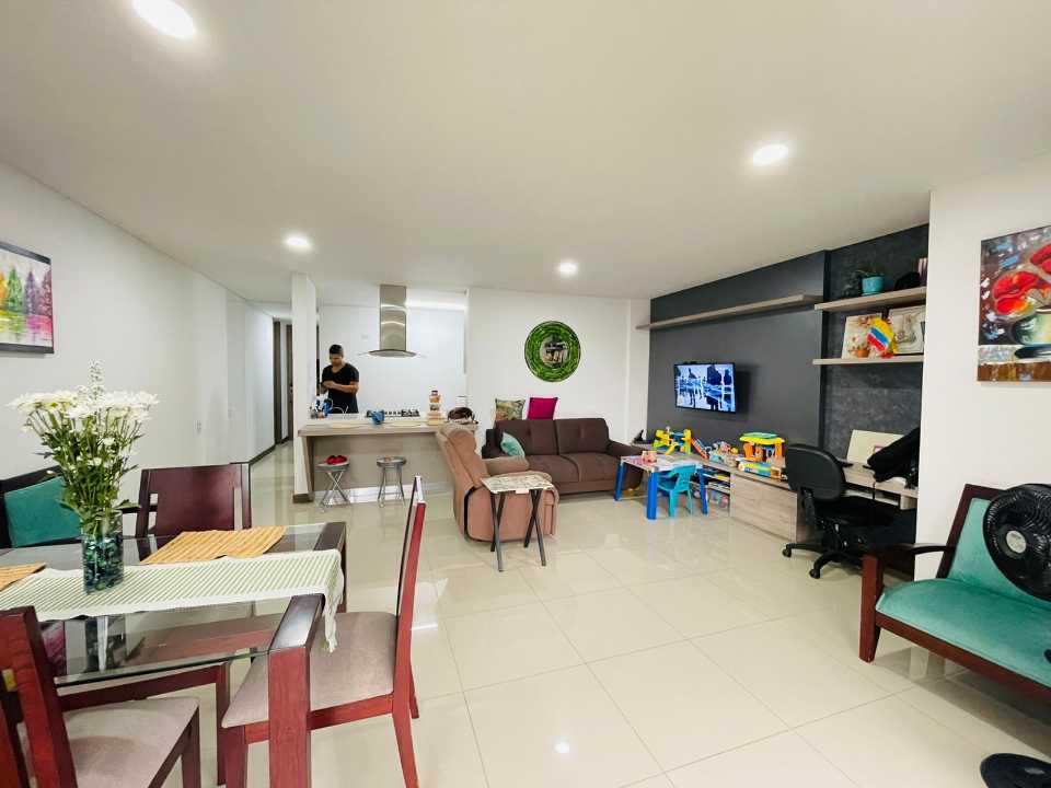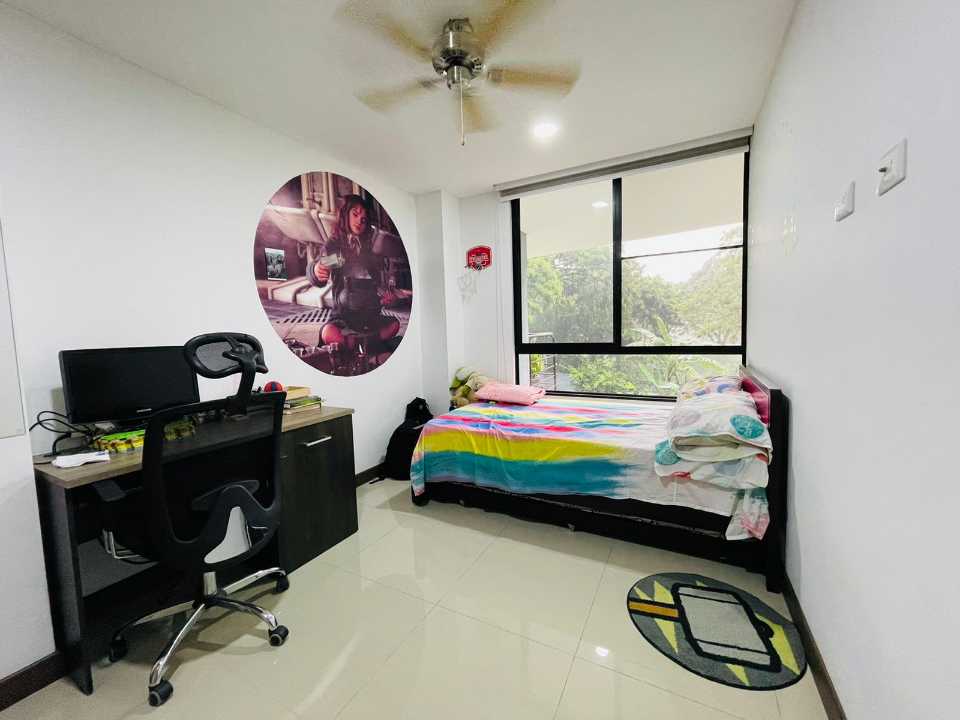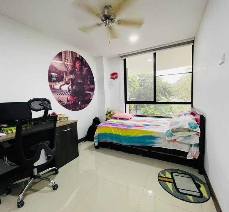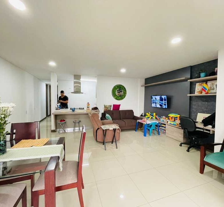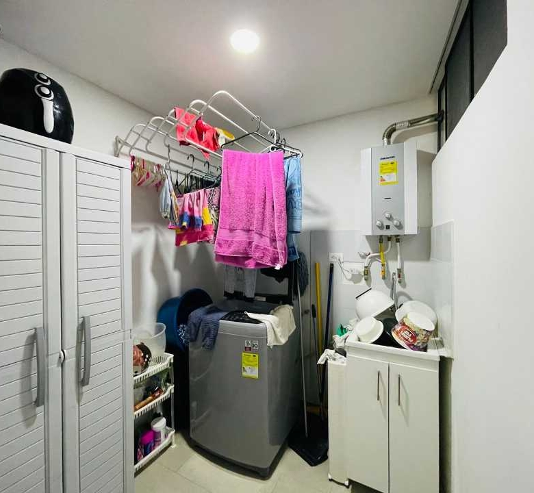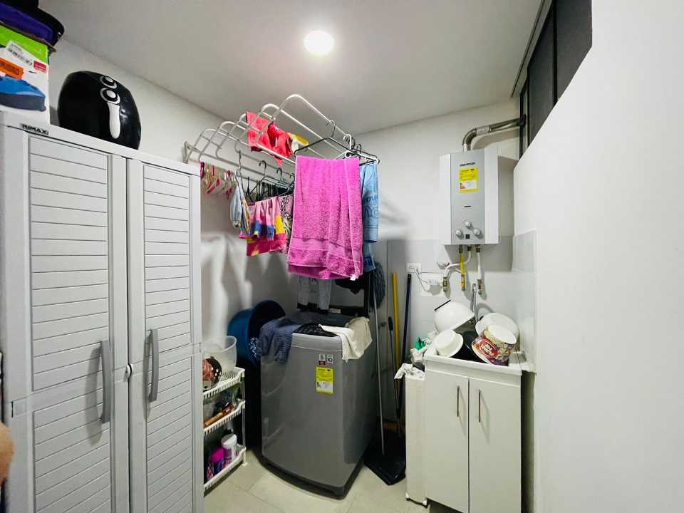El apartamento consta de 4 habitaciones (1 puede ser estudio), Habitacion Principal con baño y 3 con closet empotrado. Baño de alcobas y baño social, sala comedor, cocina amplia con barra tipo americana y cuarto de ropas amplio, cuenta con Calentador de agua.