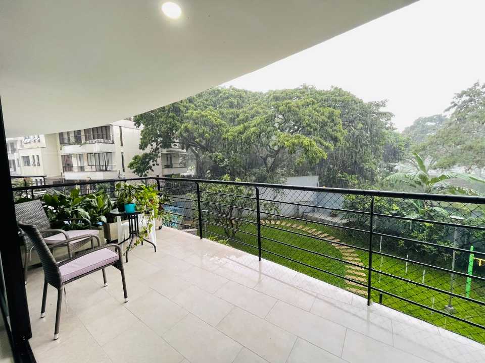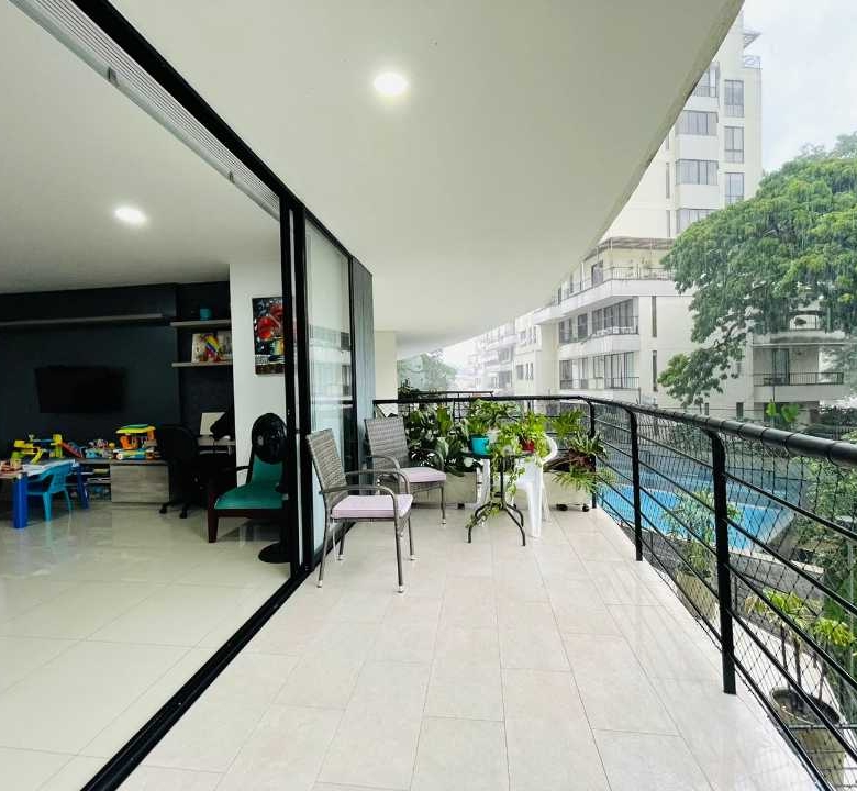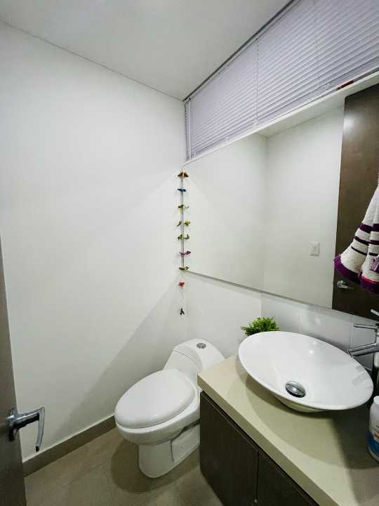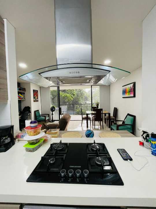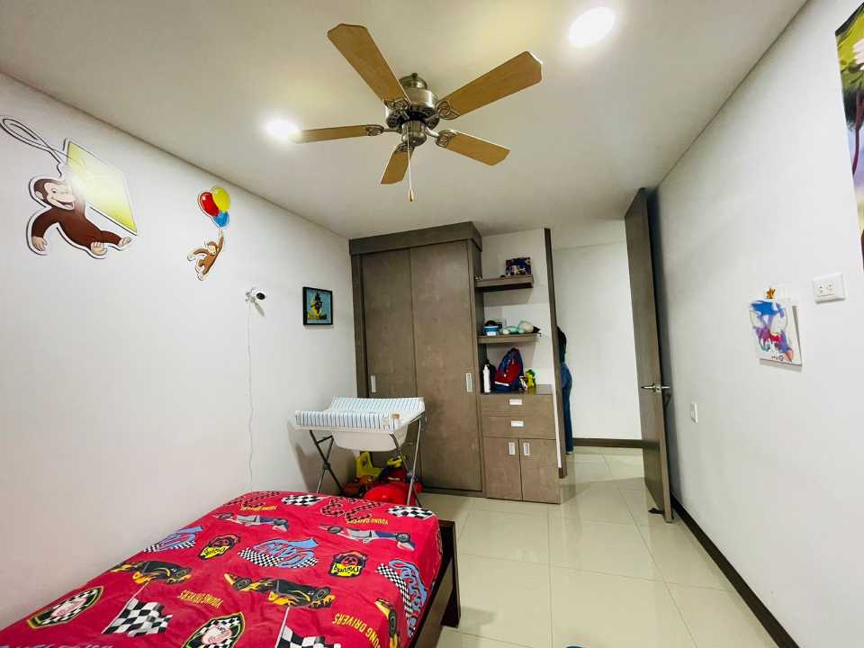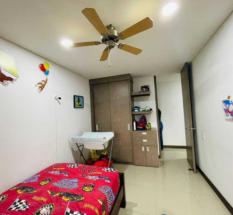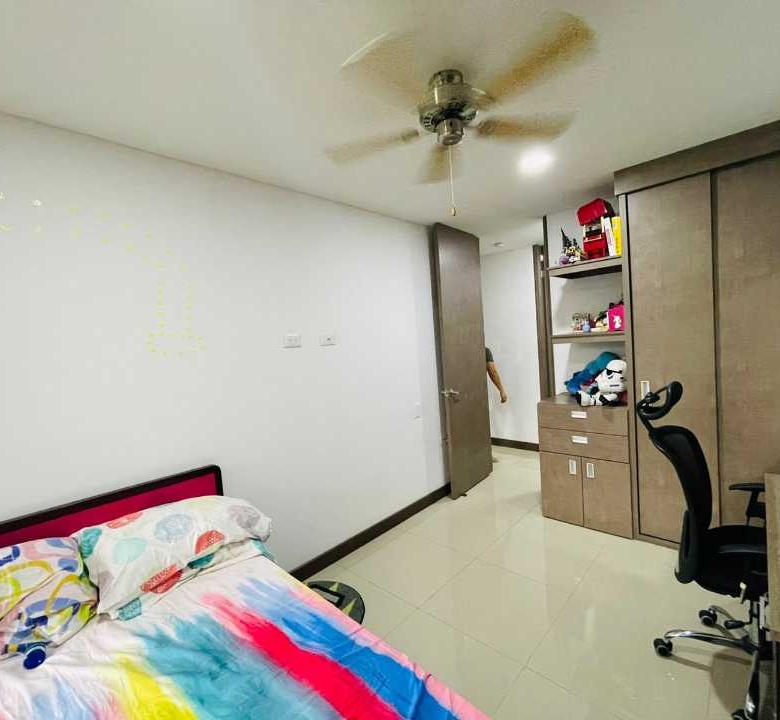 El apartamento consta de 4 habitaciones (1 puede ser estudio), Habitacion Principal con baño y 3 con closet empotrado. Baño de alcobas y baño social, sala comedor, cocina amplia con barra tipo americana y cuarto de ropas amplio, cuenta con Calentador de agua.