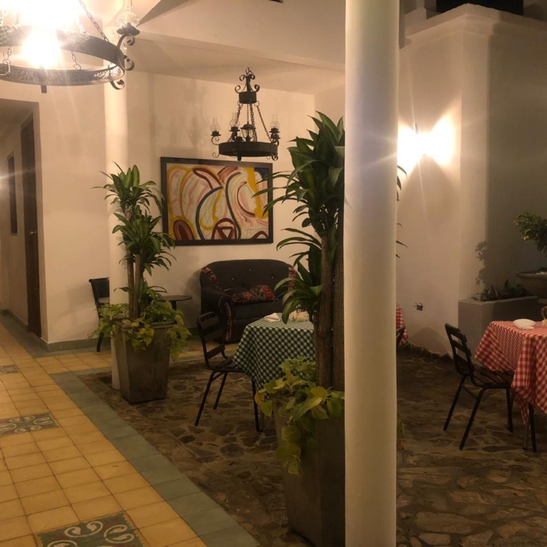 Primer piso: Restaurante completo, Cocina, Recepción, Planta telefónica 2 salones para reuniones con aire acondicionado, Baños sociales (2 de hombree y 2 de damas), 5 habitaciones con su correspondiente baño privado cajoneros, closet, Tv y Aire acondicionado, 2 patios internos, zona de residuos, pacillos y gradas de acceso al segundo piso.