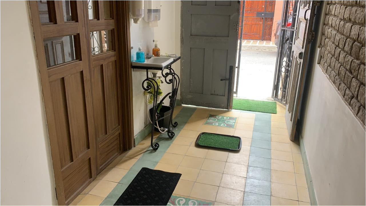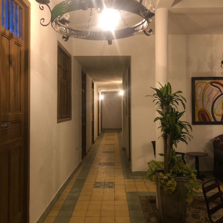 Primer piso: 10 habitaciones con su correspondiente baño privado cajoneros, closet, Tv y Aire acondicionado, Cuarto de aseo, Oficina de administración y gradas de acceso al tercer piso.