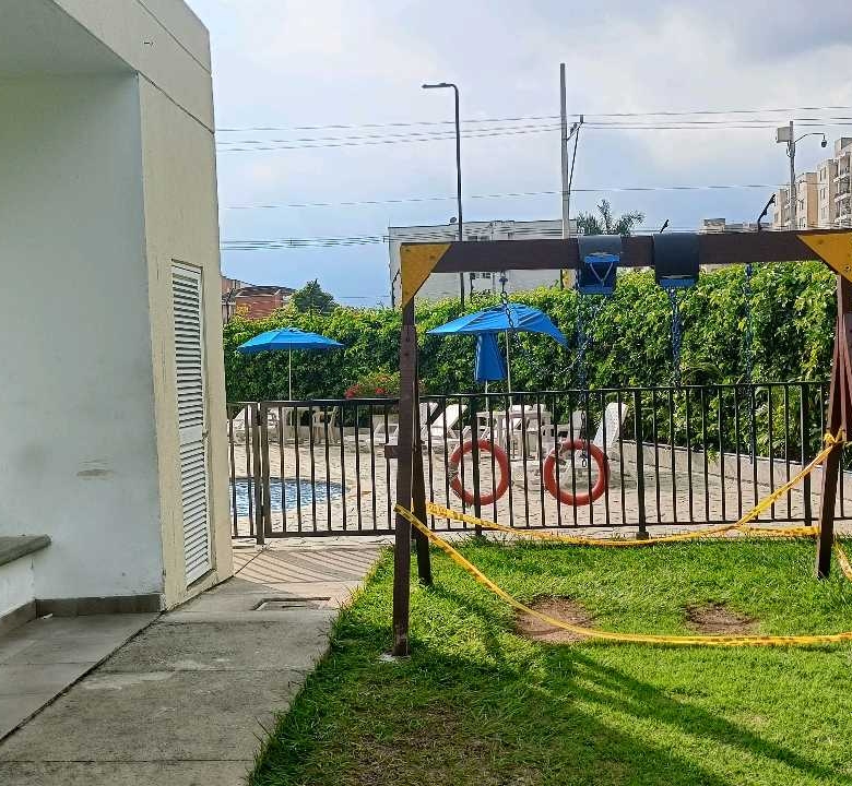 Este apartamento en primer piso consta de sala-comedor,balcón,cocina integral ,zona de ropas,alacena,1 baño social con ducha,3 habitaciones con clóset, principal con baño, la unidad cuenta con piscina para adultos y niños salón social, portería vigilancia 24/7. PARQUEADERO COMUNITARIO. La unidad cuenta con seis Torres de ocho apartamentos de 10 pisos con ascensor. Este apartamento ideal para adultos mayores por ser primer piso.