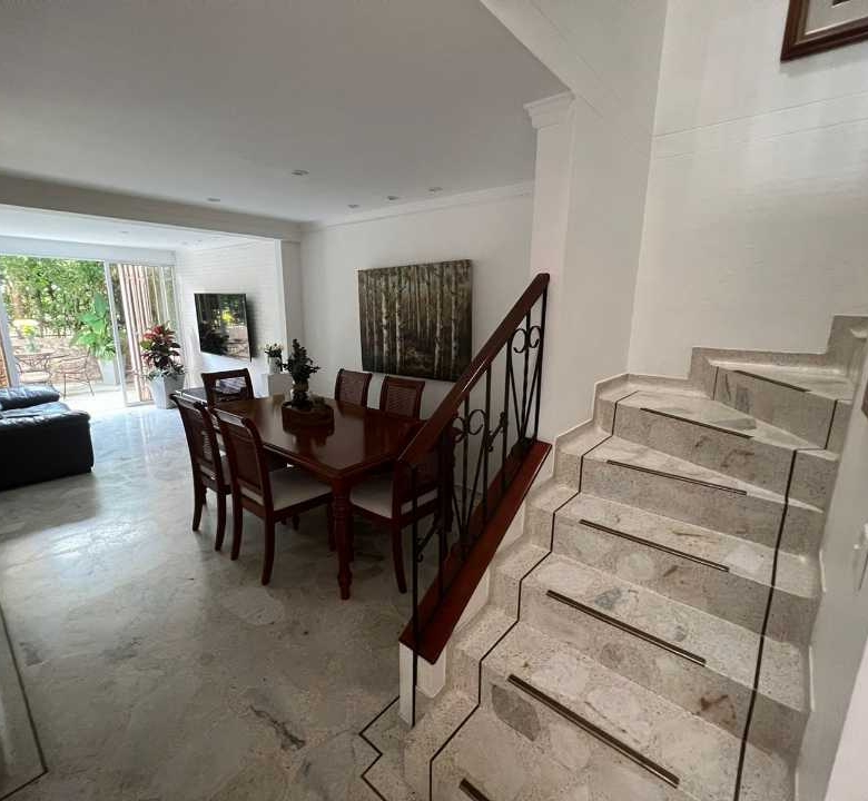 VENDO CASA QUINTAS DE DON SIMÓN 5523081PQ: Ésta casa es 2 pisos en condominio, Remodelada distribuida asi: 3 Habitaciones Principal con baño Cada una con clósett, Sala – comedor amplio, Un patio con jardín muy lindo, Cocina amplia integral remodelada, Estudio. Segundo piso: Las habitaciones amplias con clóset La principal con su baño, Bañó social, 2 parqueaderos, La casa está remodelada, buenos acabados , La unidad cuenta con zona verde, juego para niños piscina para niños y adultos, salón social zona de BBQ, Cuenta con portería y vigilancia citófono, Gas domiciliario. Parqueadero de visitantes,El condominio está muy bien ubicado cerca a la calle 14, Tiene cerca supermercados D1,Ara,súper inter Centros comerciales Restaurantes Droguerías Vías pavimentadas, transporte público. Esta en excelente estado !!!