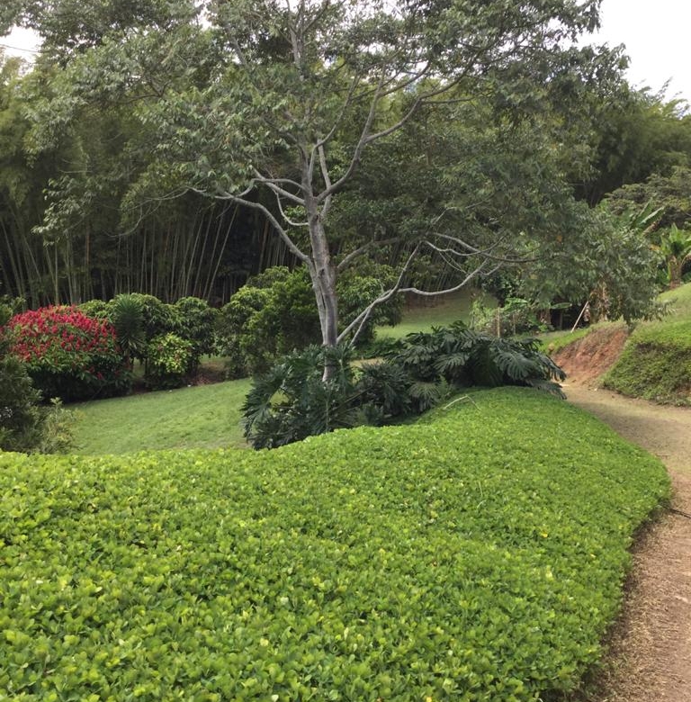 Amplios espacios verdes, arboles frutales