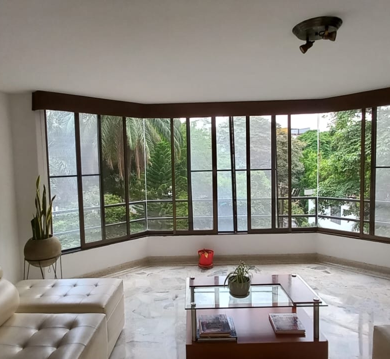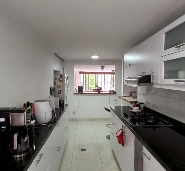 Este inmueble cuenta con un área de 180 m2, al ingresar a esta propiedad con ascensor directo, te recibirán un hall,  amplia sala comedor con vista exterior hacia un bonito parque, baño social, cocina integral estilo americano, alcoba de servicio con baño y zona de oficios, biblioteca estudio para trabajar desde casa o para tus momentos de lectura y estudio, estar de alcobas o TV  y 3 confortables habitaciones, la principal con baño y baño de habitaciones. Area de recepción con porteria y control de acceso magnetico. En el sótano cuenta con 2 garajes privados paralelos y control de acceso vehicular.