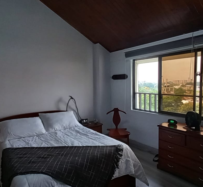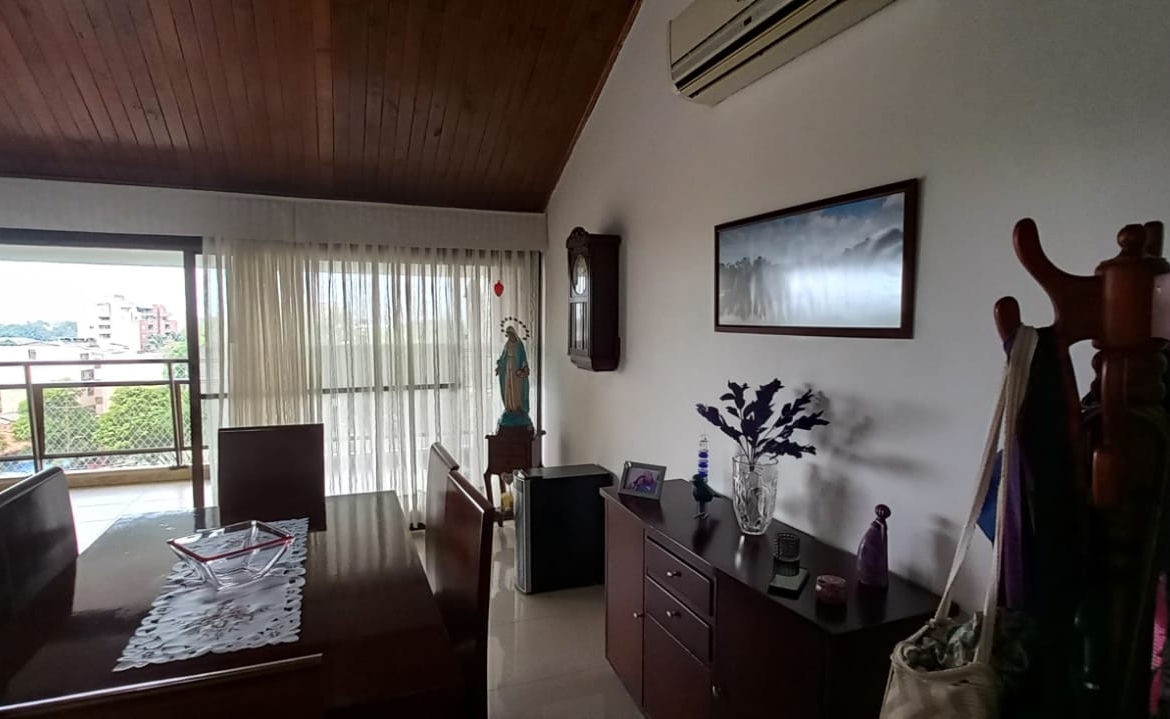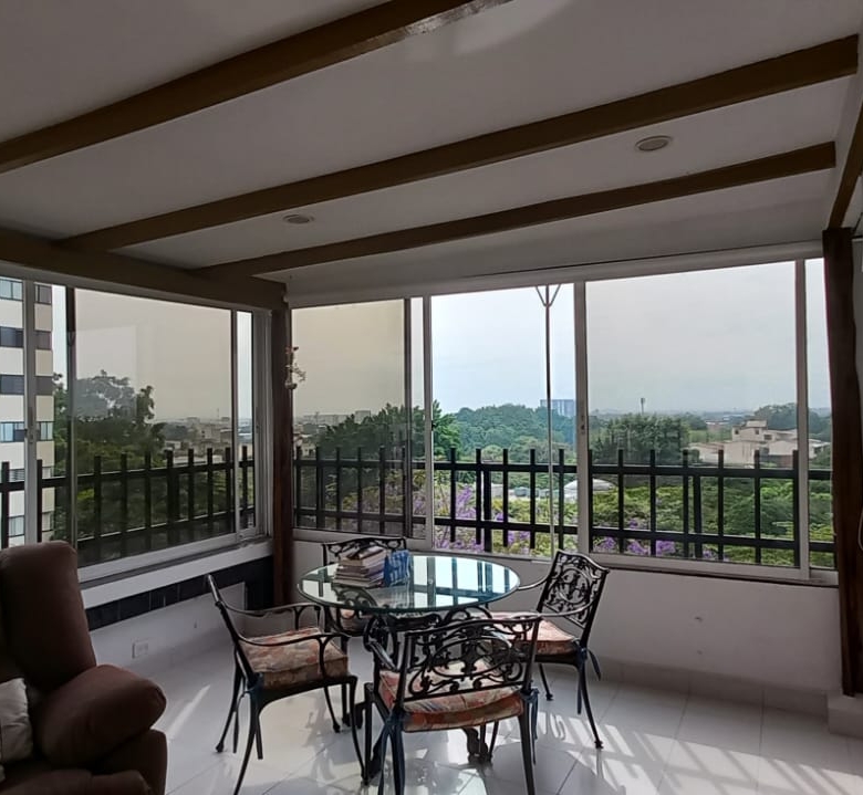 VENTA O ALQUILER APARTAMENTO LA FLORA, CALI, W9357094, JO. PRIMER NIVEL. Amplia sala comedor con piso en porcelanato, cocina y zona de servicios, mesón madera y acero inoxidable con gavetas en madera, cuarto empleada domestica con baño, balcón con doble baranda, cuarto principal con closet pared a pared, y baño privado, cuarto de huespedes con closet pared a pared, baño social con ducha, closet de herramientas bajo gradas a segundo nivel, biblioleta estudio con mueble madera pared a pared, estadero o terraza cubierta con ventanal completo 3 lados.  SEGUNDO NIVEL: Amplio cuarto con closet pared a pared y baño privado con ducha, buhardilla closet amplio para almacenaje.  ZONA COMUN:  Gran Piscina de 1.50 m; salón social para 20 personas o más; zona de B.B.; con 5 parqueaderops internos para visitantes; porteria 24/7; ascensor hasta el piso.  En alquiler el canon incluye la administración.